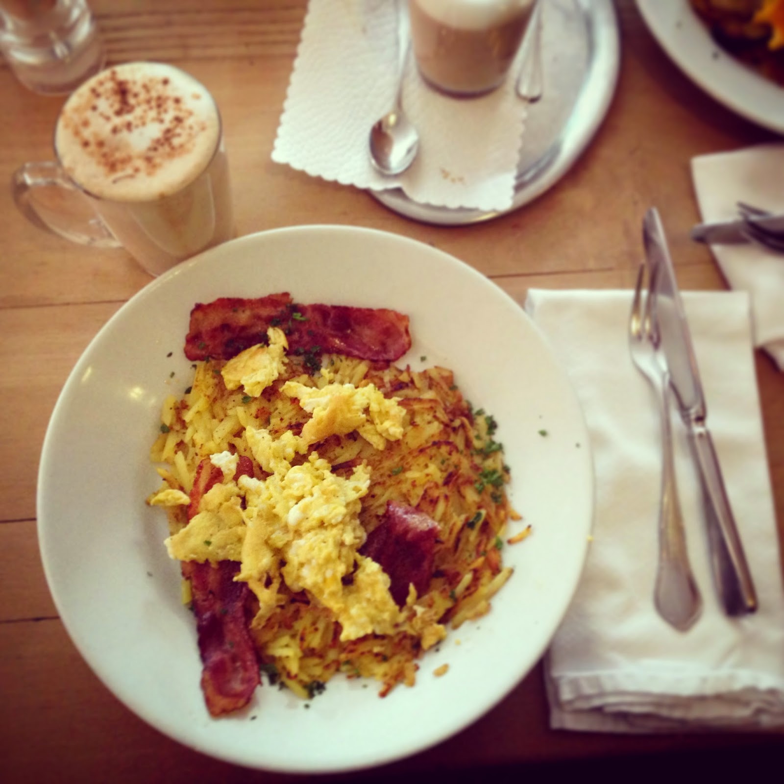 If you’ll find yourself outside the hotel wanting to have lunch or dinner, there are loads of restaurants to choose in and around Davos. We opted to go to Pulsa once for dinner, located inside Hotel Grischa, which has five different restaurant, so you won’t be disappointed. For lunch we headed twice to one of the most famous cafés in town: KaffeeKlatsch. Especially during the weekend they have a prolongued brunch, also on a Swiss cuisine base. I had a plate of “Rösti” with bacon and scrambled eggs. You’ll get generous portions so you won’t definetly leave this place hungry. You’ll might have to wait for a table here, the two floors get packed pretty fast.
