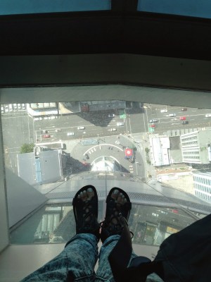 All this stuff started to Change during those four days, I feel ready to embrace the things that life has to offer when I get back, see what happens and go with the flow, so thank you Auckland. A lot. And no, it wasn’t all disappointment actually, I had a bunch of pretty good times here too. Our trio still had some time to do some Sightseeing in the city’s Business centre, including a visit to the Sky Tower. That’s actually the best Point to have a wide overwiev of town, the surrounding Islands and Suburbs. The most awesome Thing for me was to step up on bare glass and see the cars passing down on the tiny street way down at the bottom of the building.