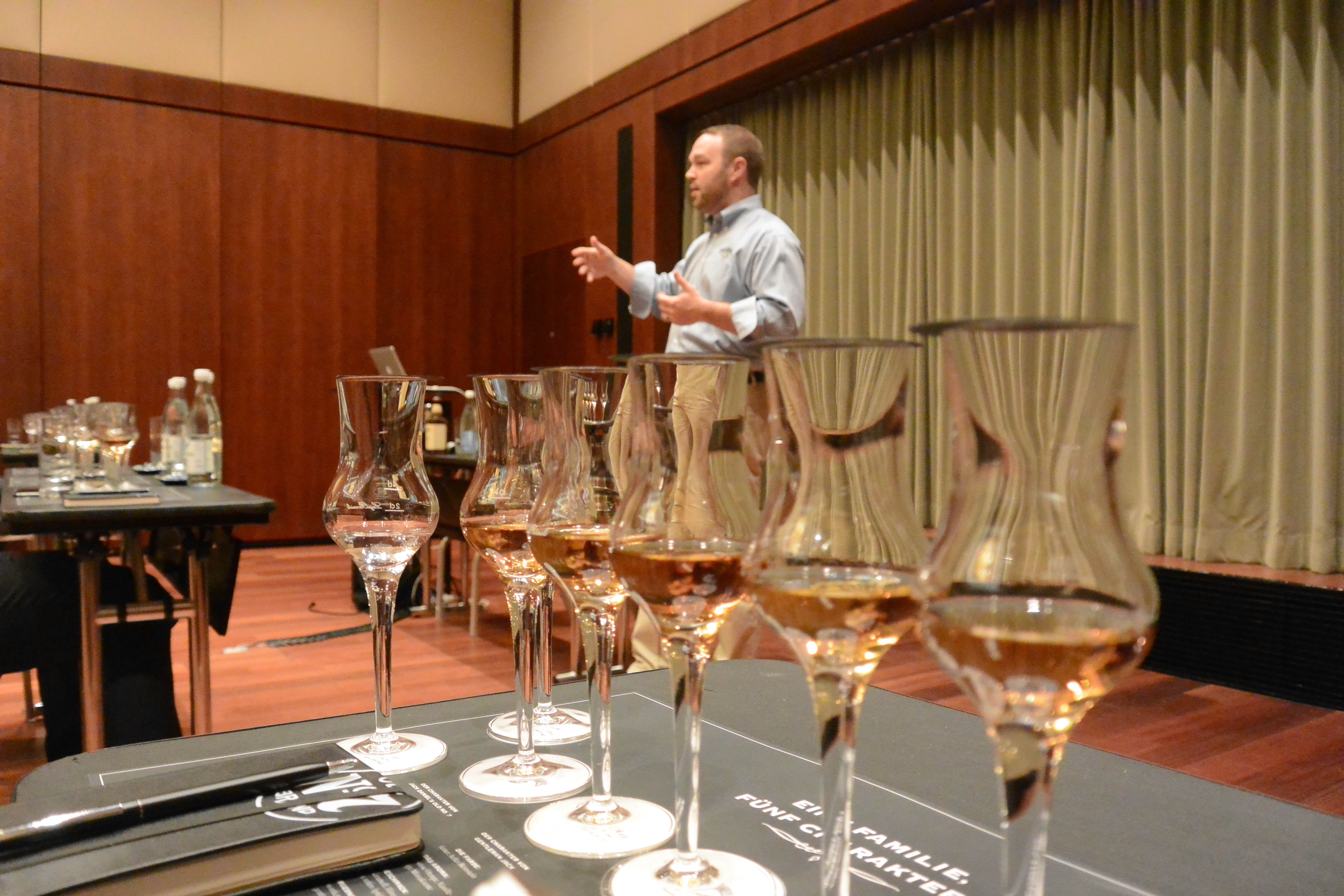 The Class was hosted by Chris Fletcher, who’s the Assistant Master Distiller at the Jack Daniel’s Distillery in Lynchburg, Tennessee. It was immediately clear that the man loves his job there. He started working for the Jack Daniel’s family as a guide in the distillery, graduated in between as a chemist, and then got back to know more about the production of Jack Daniel’s whiskey, like his grandfather did, a retired Master Distiller.
