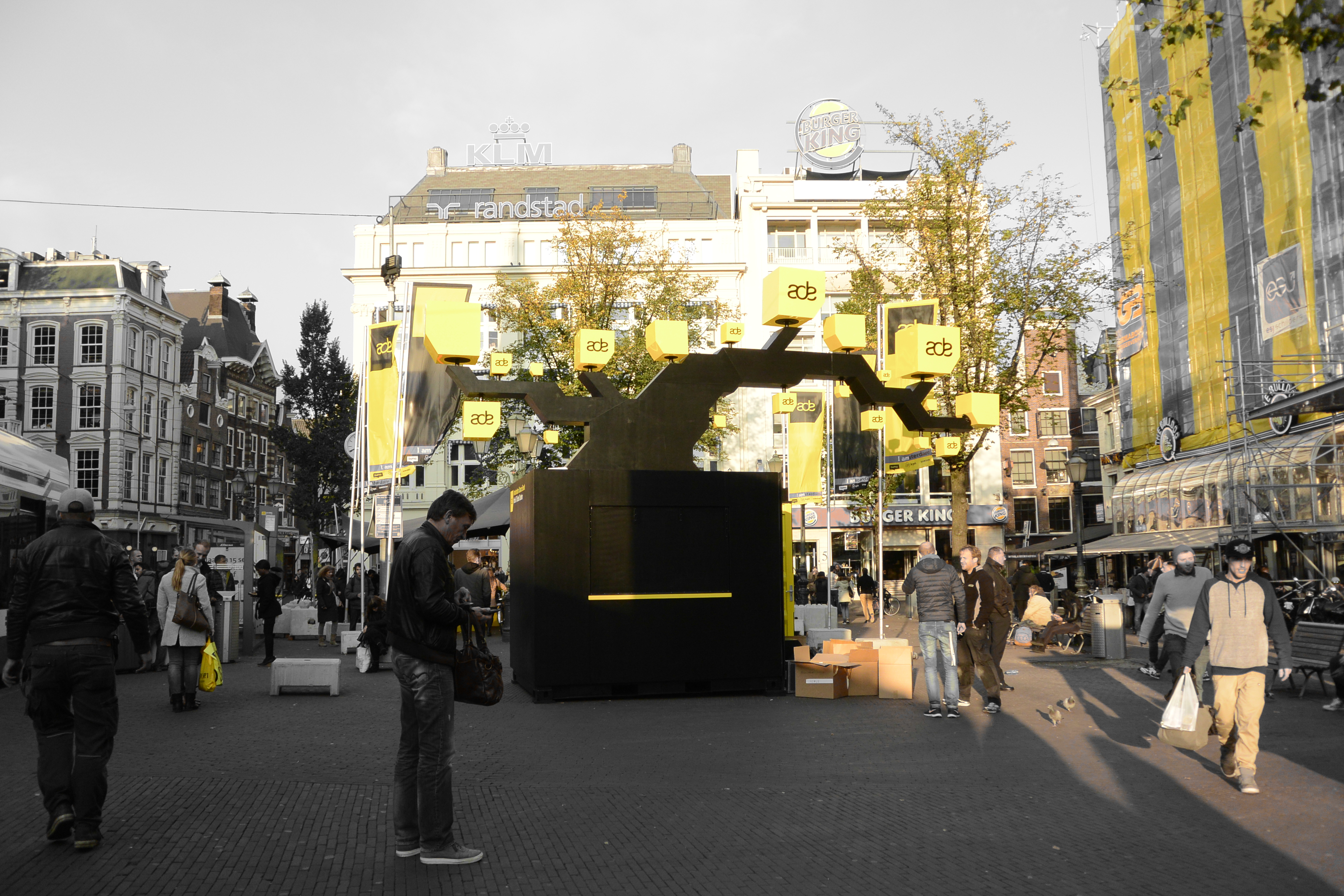 Today, instead, it was all about the official Amsterdam Dance Event opening. It’s hard to miss it, the yellow seats and flags show you exactly which places are part of this phenomenal event, and to be honest, I’m glad they do. With happenings in over 1000 places until Sunday, it would be nearly impossible to spot them, especially when they take place in a venue with no sign or any info on the outside.
