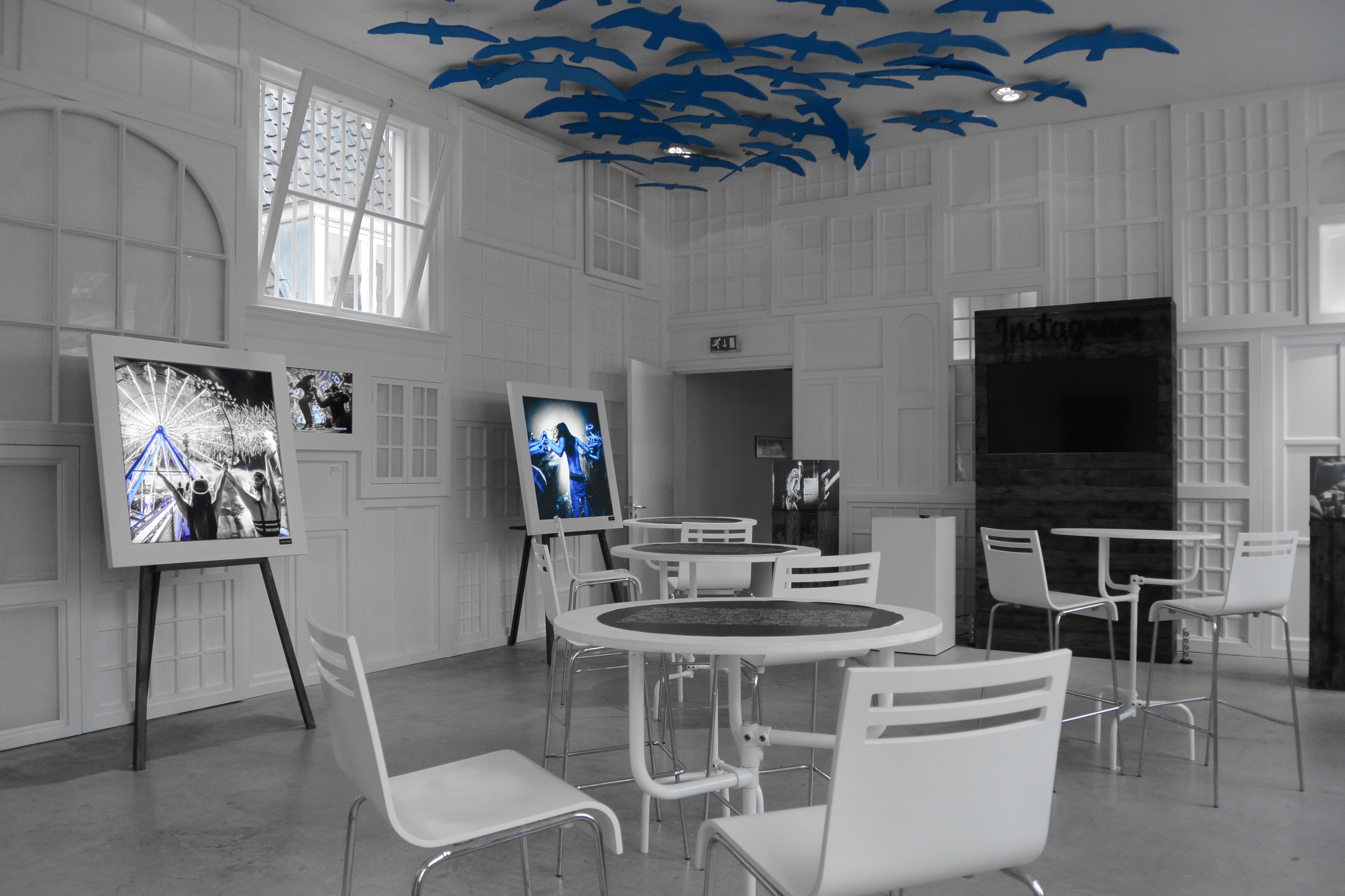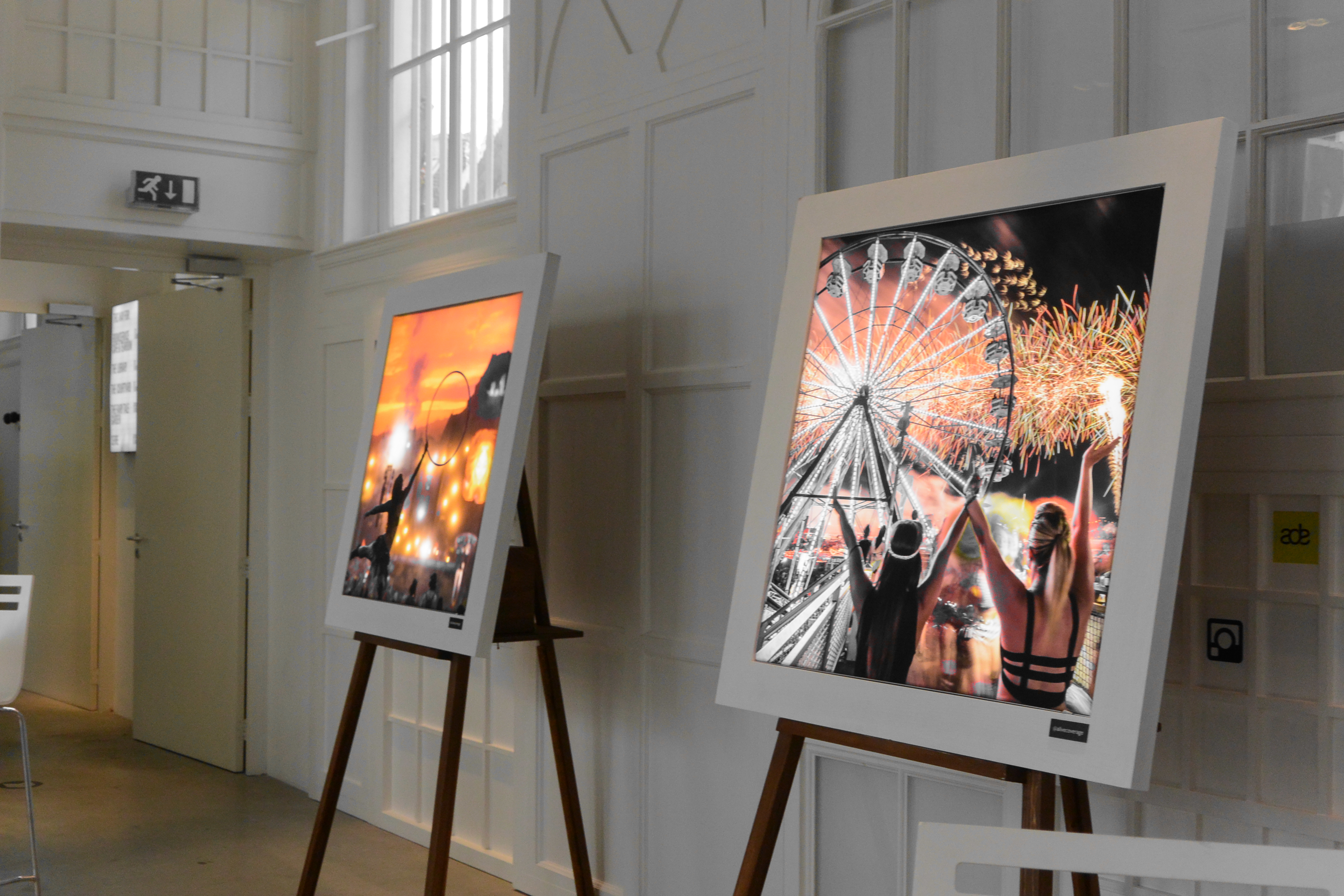 After collecting everything, I headed to the Hotel Droog to see the Instagram Gallery on Music Photography. The building is amazingly decorated and has a cute background garden. The load of white you get inside makes every piece of furniture outstanding and every decoration is particularly chosen. This exhibition took me back to the part of social media I actually like: less about self inscenating, more about capturing moments on festivals, in clubs, portraits of DJs. Even trying to capture the musical moment itself, if you ask me. The pictures where shown on canvas or on a screen as a slide show, and there truly were a bunch of them I’ve imagined hanging on my own walls.